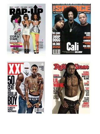 This document lists various hip hop artists and bands such as 50 Cent, Nelly, R. Kelly, Kanye West, Eminem, Lil Wayne, J. Cole, and The Black Eyed Peas. It also discusses some of the traditional pillars of hip hop culture, which include DJing, break dancing, rapping, and graffiti art. Additionally, it notes that hip hop music originated in the Bronx in the 1970s, mostly among African American and Latino youth, and has since grown to become a major global music genre.