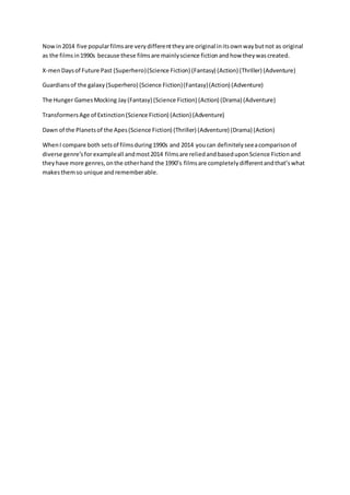 Genres evolve over time due to cultural and historical changes. In the 1940s-1950s, the lone Western hero was popular, but shows in the 1960s-1970s like Rawhide and Bonanza featured groups of heroes reflecting the modern workplace. As interest in crime and espionage rose in the 1970s-1980s, the Western was replaced by police/detective and spy genres. Audiences also seek certain genres that relate to the fears or realities of their time. During the Great Depression, people turned to romantic comedies as an escape from hardship.