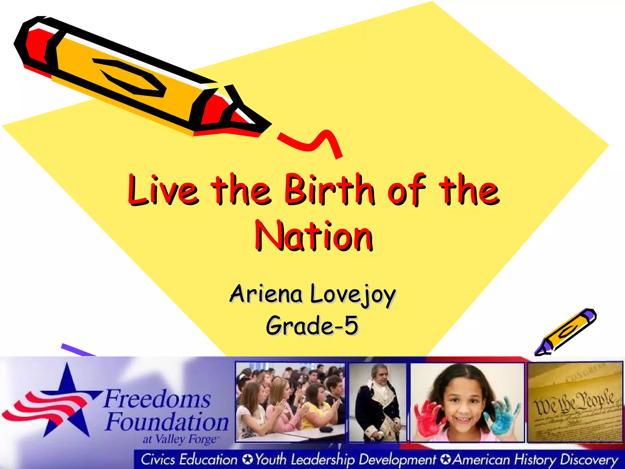 The document outlines an educational tour for students that will take them to historic sites in Philadelphia, New York City, and Washington D.C. related to the founding of the U.S. and the development of the Constitution. Students will visit places like Independence Hall, the Statue of Liberty, and the Lincoln Memorial to learn about important figures and events. Each evening features a living history presenter in character like George Washington or Benjamin Franklin to further engage students.
