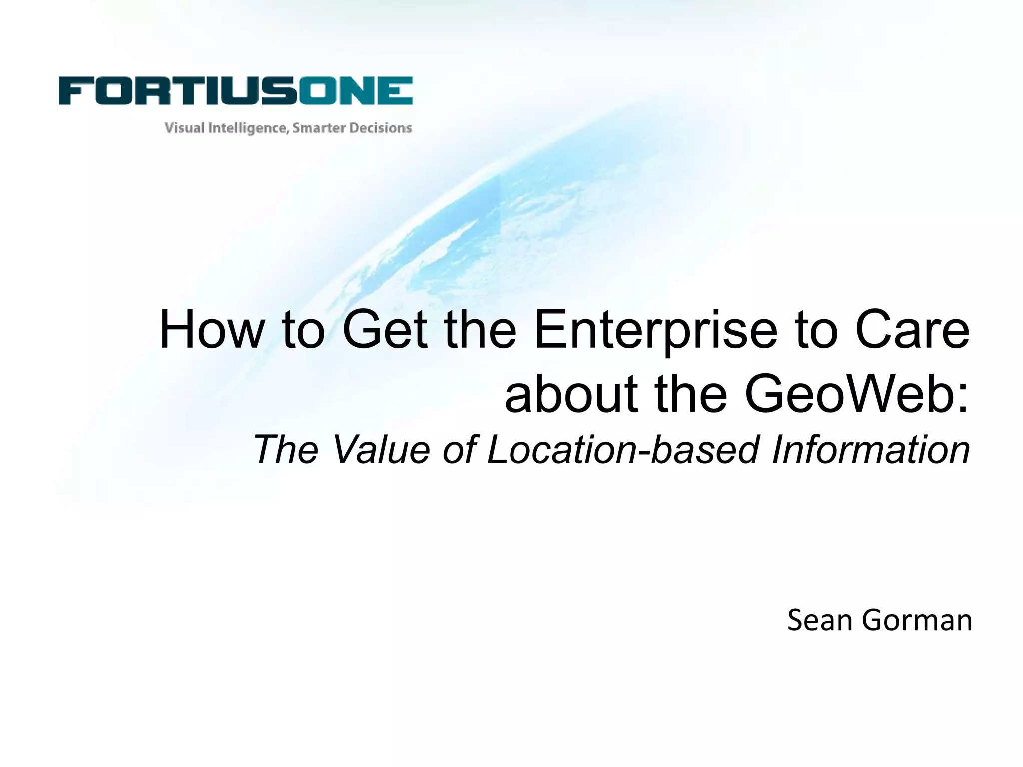 The document outlines the importance of integrating geo-enabled data into regular enterprise workflows to enhance decision-making and identify trends. It emphasizes the need for visual intelligence to convert location data into actionable insights, demonstrating its value through ROI and improved user empowerment. Additionally, it highlights practical steps for data sharing and collaboration to maximize the utility of geographic information.