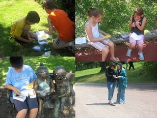 Geocaching is a treasure hunting game where players use GPS devices to hide and seek containers called geocaches around the world. Players log their finds online. The document discusses what geocaching is, how to get started using a GPS unit, how to find geocaches by entering coordinates into the GPS, and signing the logbook when finding one. It also covers educational uses of geocaching to teach map reading, coordinates, and cross-curricular lessons.