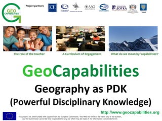 This project, supported by the European Commission, focuses on enhancing geographical knowledge, including place context, global concepts, and relational thinking. It emphasizes the importance of applying geographic principles for analysis and problem-solving in various social, economic, and environmental contexts. The project aims to foster complex understanding of geography as a discipline, reflecting evolving and often contested concepts.