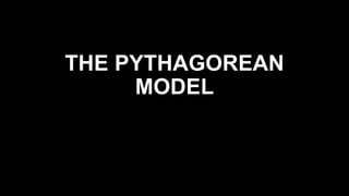 - The Pythagorean model placed Earth stationary at the center with celestial bodies orbiting in perfect circular motion. Plato and Eudoxus later expanded on this model using concentric spheres to explain planetary retrograde motion.