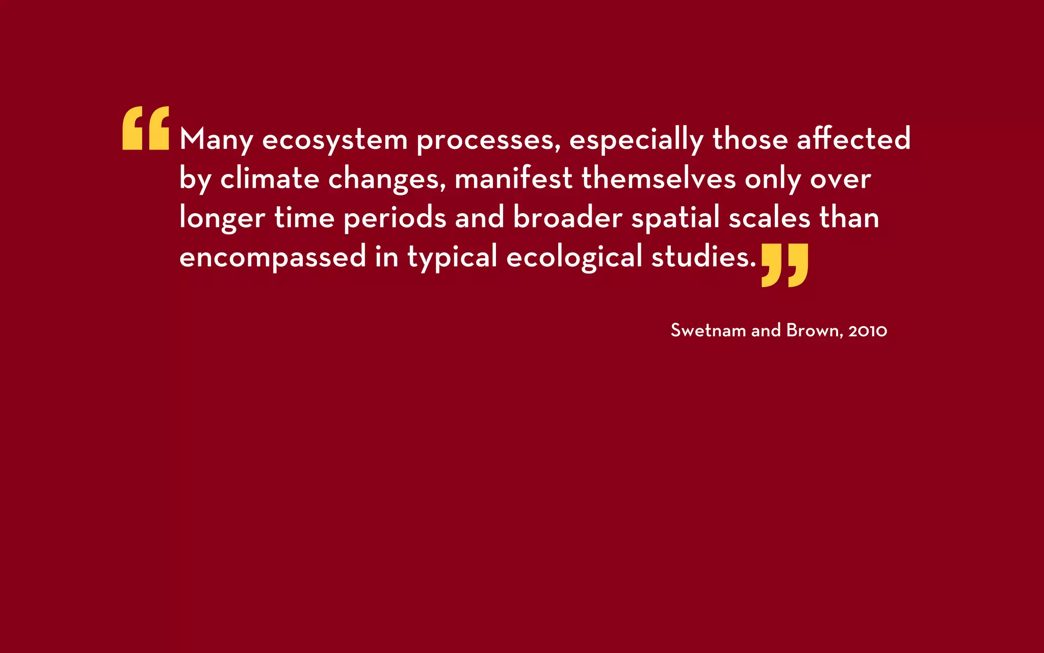 Dendroecology is the use of tree-ring dating and analyses to investigate events and processes involving the interactions of organisms with their environment. It provides a longer temporal perspective than other records through tree-ring evidence that has high precision. Chronological control allows comparison of multiple lines of evidence. However, tree-ring records can be irregular and some processes may be unknown. Past conditions may have no modern analog, complicating interpretation. Dendroecology is used to study forest demography, growth dynamics, and disturbance ecology like insect outbreaks and fire history.