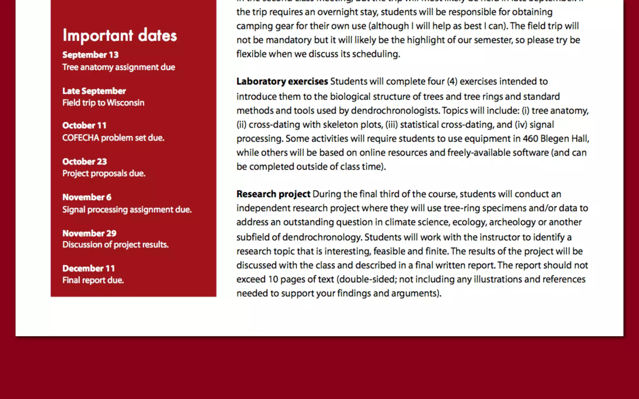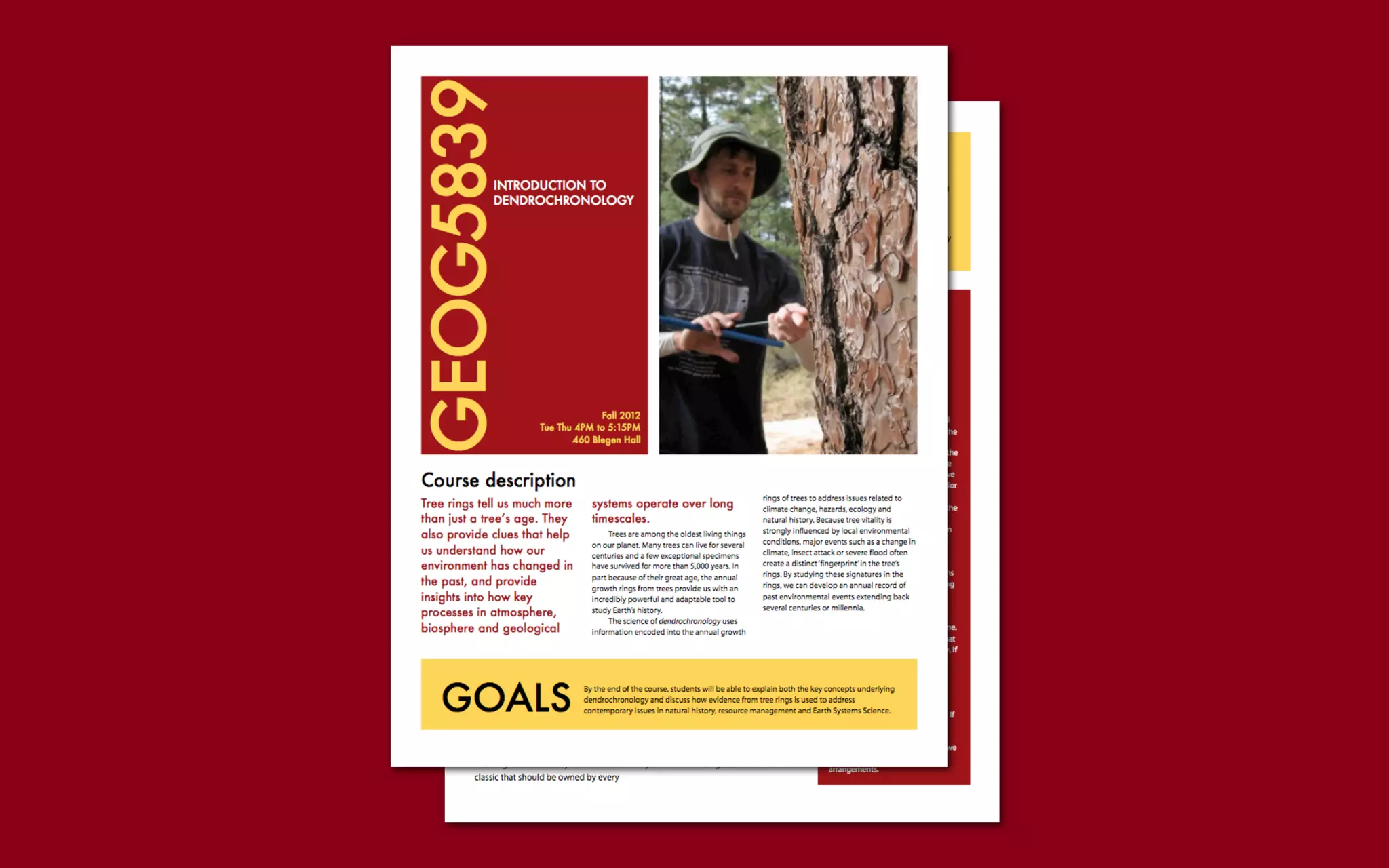 The document discusses dendrochronology, exploring its role in understanding climate change, environmental hazards, and natural history through the study of tree rings. It outlines various topics related to tree growth, weather impact, and historical analysis techniques. The course structure includes discussions, laboratory exercises, and project work.