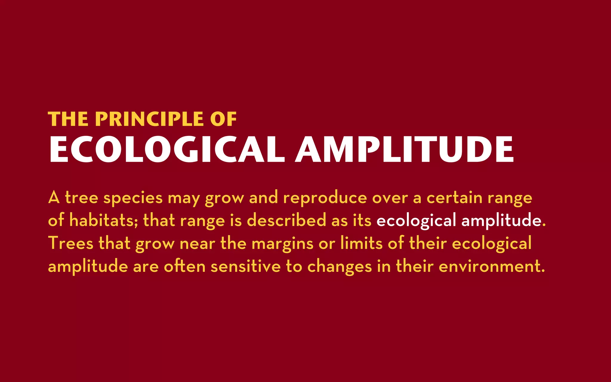 - The principle of ecological amplitude describes the range of habitats a tree species can grow in, and trees at the limits may be more sensitive to environmental changes.