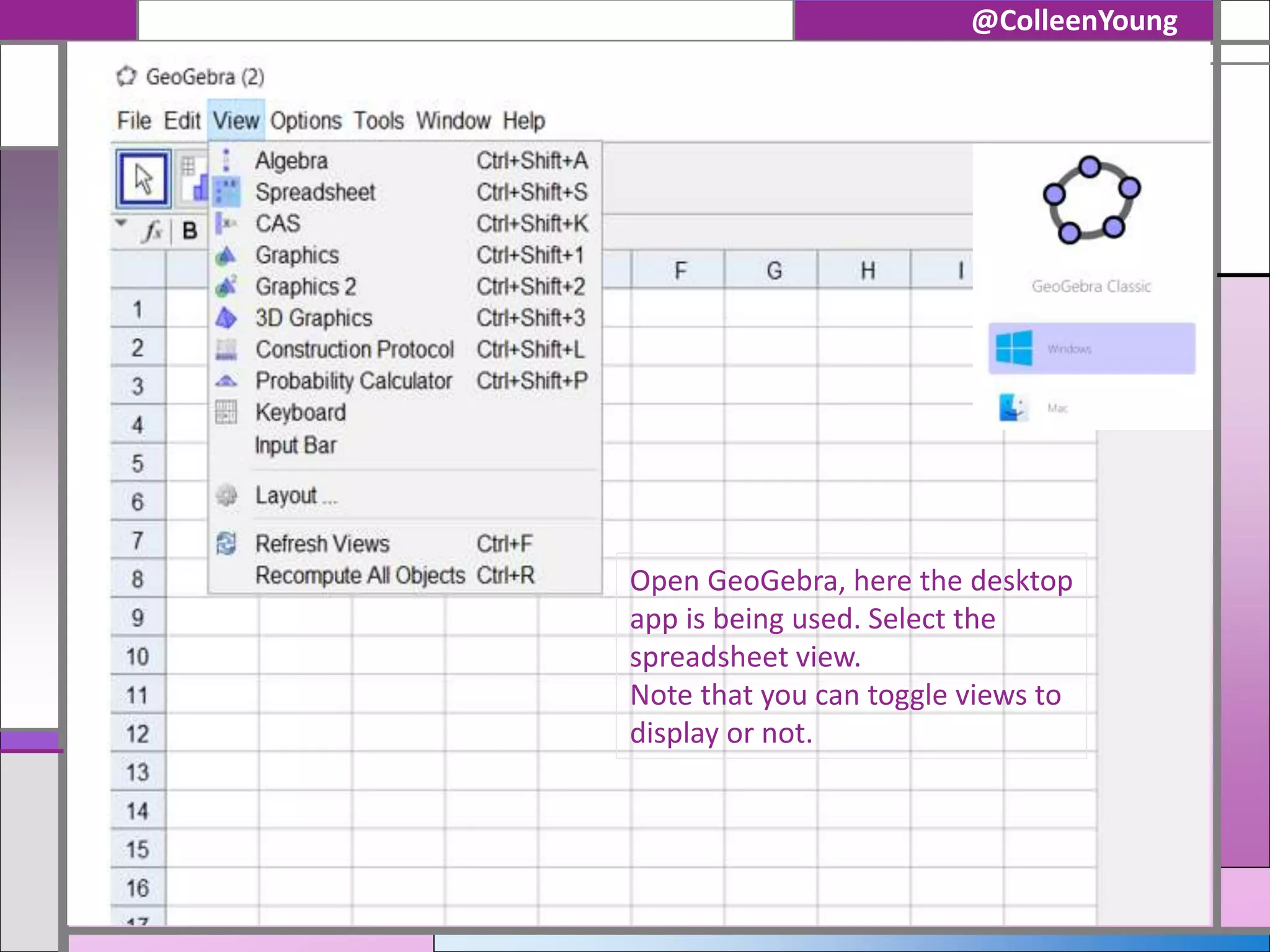 This document provides instructions for analyzing spreadsheet data in GeoGebra by copying data from another application into GeoGebra's spreadsheet view, selecting one variable analysis to generate a histogram of the data, and optionally generating additional plots like a boxplot or second histogram by right clicking or using GeoGebra's math calculators interface. Outlier data like an age of 138 is identified for potential removal to clean up the data.