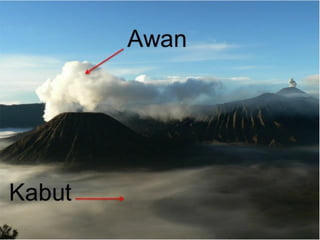 Awan adalah kumpulan tetesan air atau kristal es di atmosfer yang terbentuk melalui proses pengembunan uap air. Jenis-jenis awan dibedakan berdasarkan morfologi dan ketinggiannya, termasuk awan cirrus, cumulus, dan stratus, yang masing-masing memiliki karakteristik dan kondisi pembentukan yang berbeda. Kabut, yang terbentuk dari titik air dekat permukaan tanah, berbeda dengan awan yang berada di troposfer dan umumnya bergerak lebih lambat.