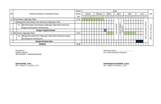 Dokumen ini adalah program akademik untuk mata pelajaran geografi kelas XI pada tahun pelajaran 2010/2011. Program ini mencakup kompetensi dasar terkait biosfer, antroposfer, dan sumber daya alam, dengan alokasi jam pelajaran dan waktu untuk berbagai kegiatan belajar. Selain itu, terdapat informasi mengenai pelestarian lingkungan hidup dan ujian yang berlangsung selama semester.