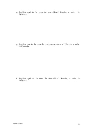 3. Explica què és la taxa de natalitat? Escriu, a més, la fórmula.