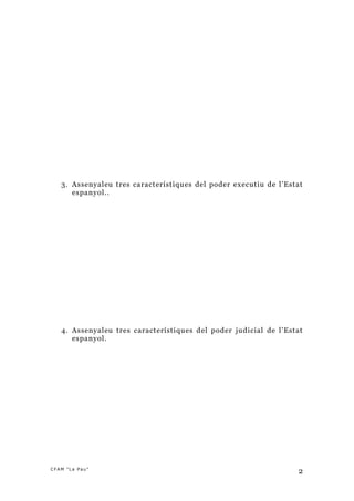 3. Assenyaleu trescaracterístiques del poder executiu de l’Estat
