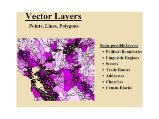 Geographic Information Systems (GIS) involve the collection, storage, processing, analysis, management, retrieval, and display of geographic data. GIS integrates spatial and non-spatial data through various data models, enabling applications across multiple fields such as environmental management, urban planning, and natural resource management. Key components of GIS include hardware, software, data, methodology, and user expertise, all essential for effective geographic analysis and decision-making.