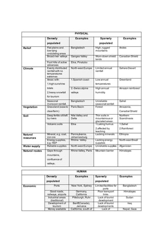 - The demographic transition model describes 4 stages of population growth: Stage 1- high birth/death rates with small growth; Stage 2- falling death rates with rapid growth; Stage 3- falling birth rates with slow growth; Stage 4- low/stable birth/death rates with steady population. More developed countries are in Stage 4 while less developed are in Stages 2-3. Some countries may now be entering a Stage 5 of falling populations.
