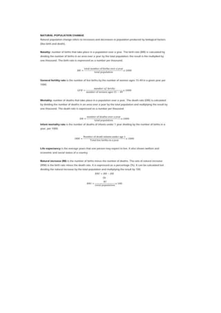 - Population change is determined by the balance between birth and death rates, and is affected by migration. Throughout history, population has generally increased except during times of war, disease, or improved family planning/education.