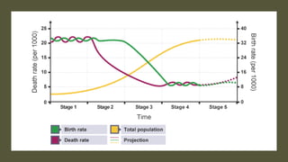 The document explores population dynamics, including growth rates, demographic transition models, and policies impacting fertility in both MEDCs and LEDCs. It discusses case studies such as China's one-child policy and France's pro-natalist strategies to address population challenges. Key themes include the differences in birth and death rates across regions, the effects of healthcare improvements, and the implications of ageing populations on economic sustainability.
