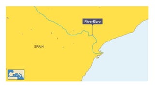 This document summarizes the key landforms found in the upper, middle, and lower courses of a river. In the upper course, steep valleys and gorges form due to erosion. Meanders and oxbow lakes develop in the middle course as the gradient decreases. The lower course features wide floodplains and deltas, where deposition exceeds erosion at the river's mouth.