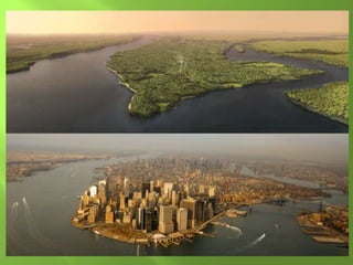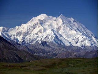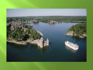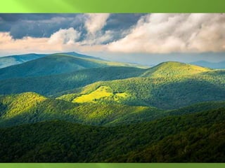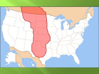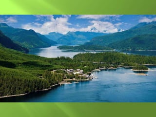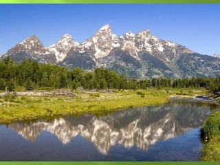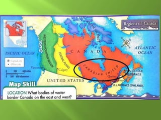 The document summarizes the major geographic features and natural resources of North America. It describes the various mountain ranges, plains, basins and plateaus that were formed by tectonic activity and erosion. It notes the continent's wealth of natural resources like gold, silver and food and how resources have contributed to the economic strength of the United States and Canada. Major rivers like the Mississippi and St. Lawrence are also outlined for their importance to trade and transportation.