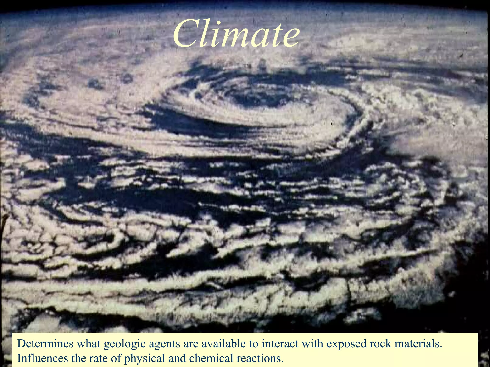 4) Climate determines the active geologic agents and affects the rates of physical and chemical weathering.