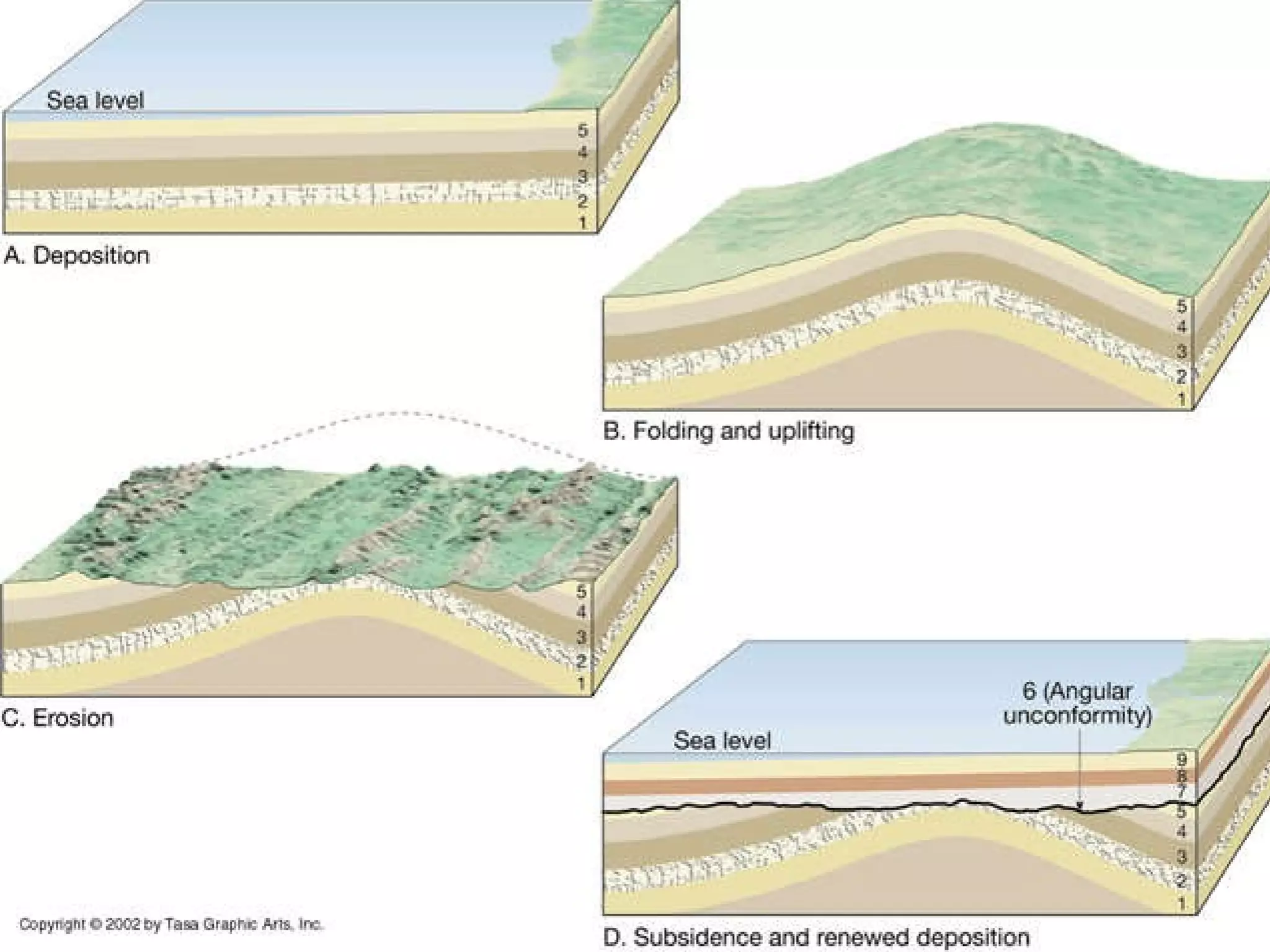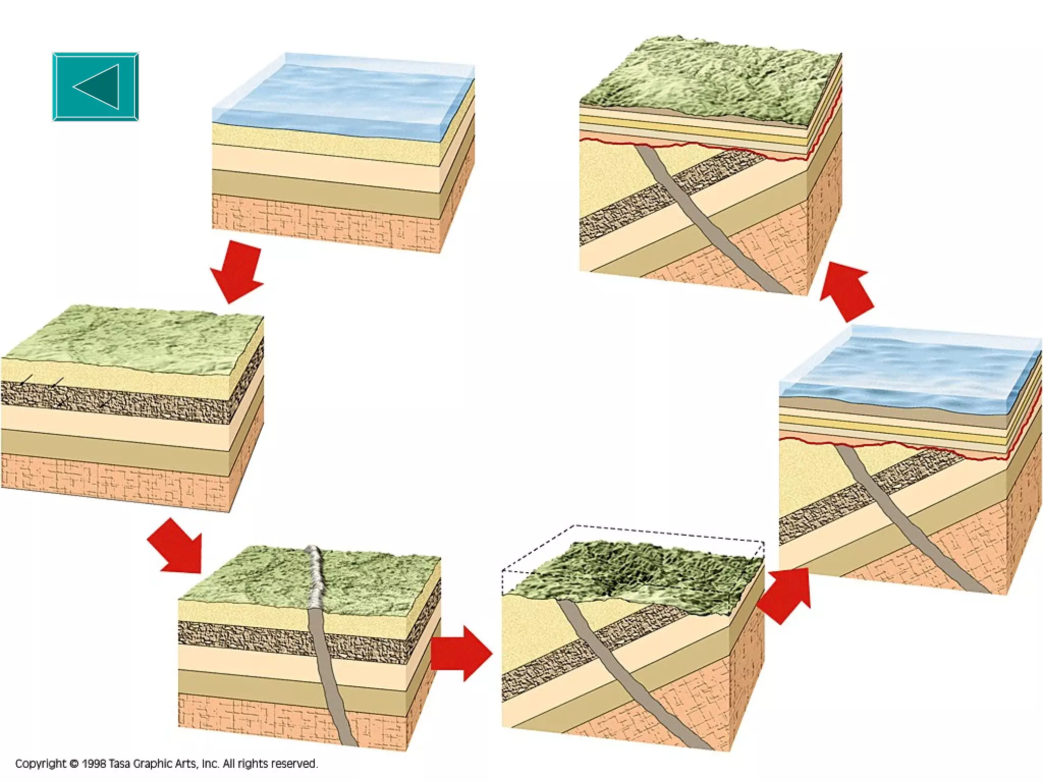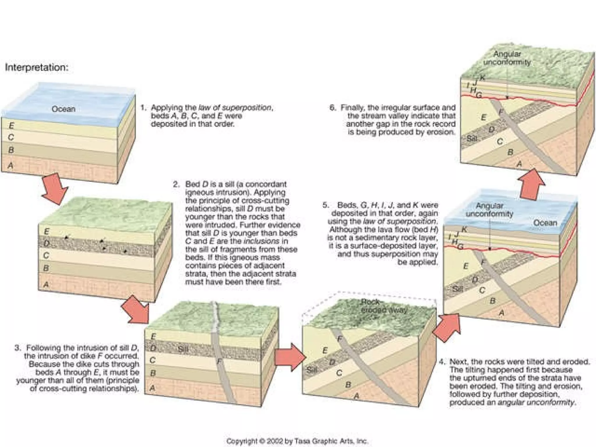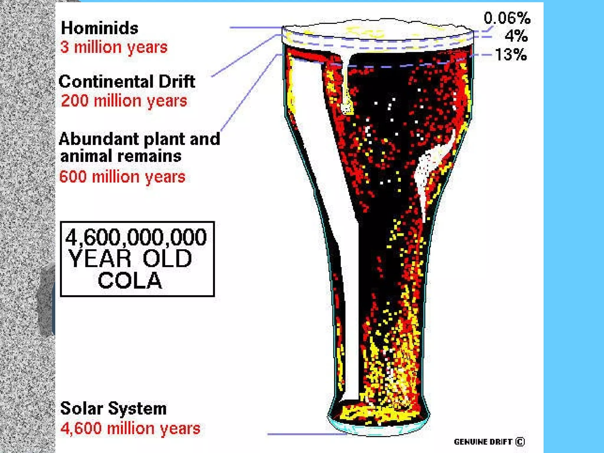 The document summarizes Earth's geologic history condensed into one calendar year. Key events include: