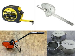 Geological mapping involves creating maps and sections that visually represent spatial geological relationships and interpretations based on field observations. Maps are created at various scales appropriate for the level of detail needed, from regional-scale maps showing broad patterns to more detailed outcrop maps of mineral prospects. Field equipment used in mapping includes compasses, clinometers, altimeters, and plane tables. Geophysical methods and aerial/satellite imagery can provide additional subsurface and regional data to supplement field mapping. Drilling and geostatistical analysis of subsurface data are also used to construct contour maps depicting formations, structures, and thickness changes.