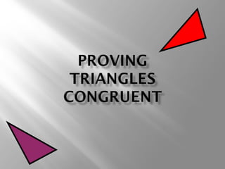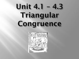 The document discusses congruence postulates for triangles. It explains that two triangles are congruent if they meet the criteria of Side-Side-Side (SSS), Side-Angle-Side (SAS), Angle-Side-Angle (ASA), or Angle-Angle-Side (AAS). The document provides examples of applying these postulates to determine if triangles are congruent and identifies the additional information needed.