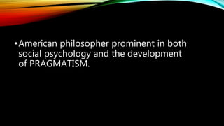 George Herbert Mead was an American philosopher known for his theory of the social self. He believed that the self develops through social interaction and language. According to Mead, the self has two parts - the "I", which represents impulses and tendencies, and the "Me", which incorporates the attitudes of others through socialization. He saw language and role-taking as central to how individuals construct their identities and engage in social life. Erving Goffman further developed these ideas through his dramaturgical approach, viewing social interaction as performances where people act according to social expectations.