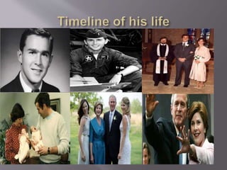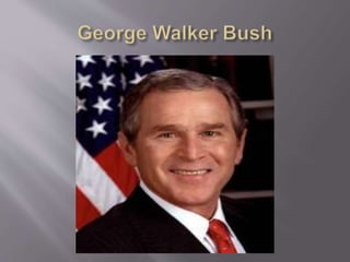 George W. Bush served as the 43rd President of the United States from 2001 to 2009. He previously worked in the oil industry and served as the 46th Governor of Texas. Bush attended Yale University where he studied various subjects before graduating with a degree in History. He then served in the Texas Air National Guard and later owned an oil company in Midland, Texas. Bush was elected President in 2000 and 2004, governing during a time that included the 9/11 terrorist attacks and resulting War on Terror.