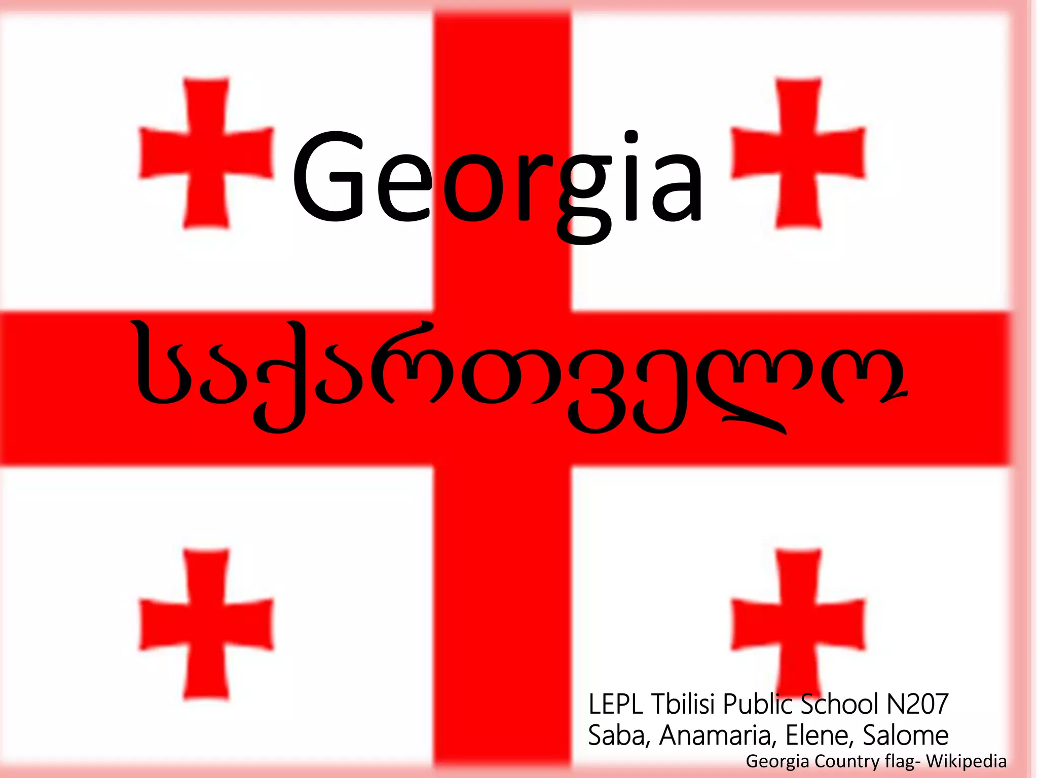 Georgia is an Orthodox Christian country located in the Caucasus mountains between Europe and Asia. The capital is Tbilisi, which has a population of over 1 million people. Georgia has a total area of 69,700 square km and its flag features five red crosses on a white background.