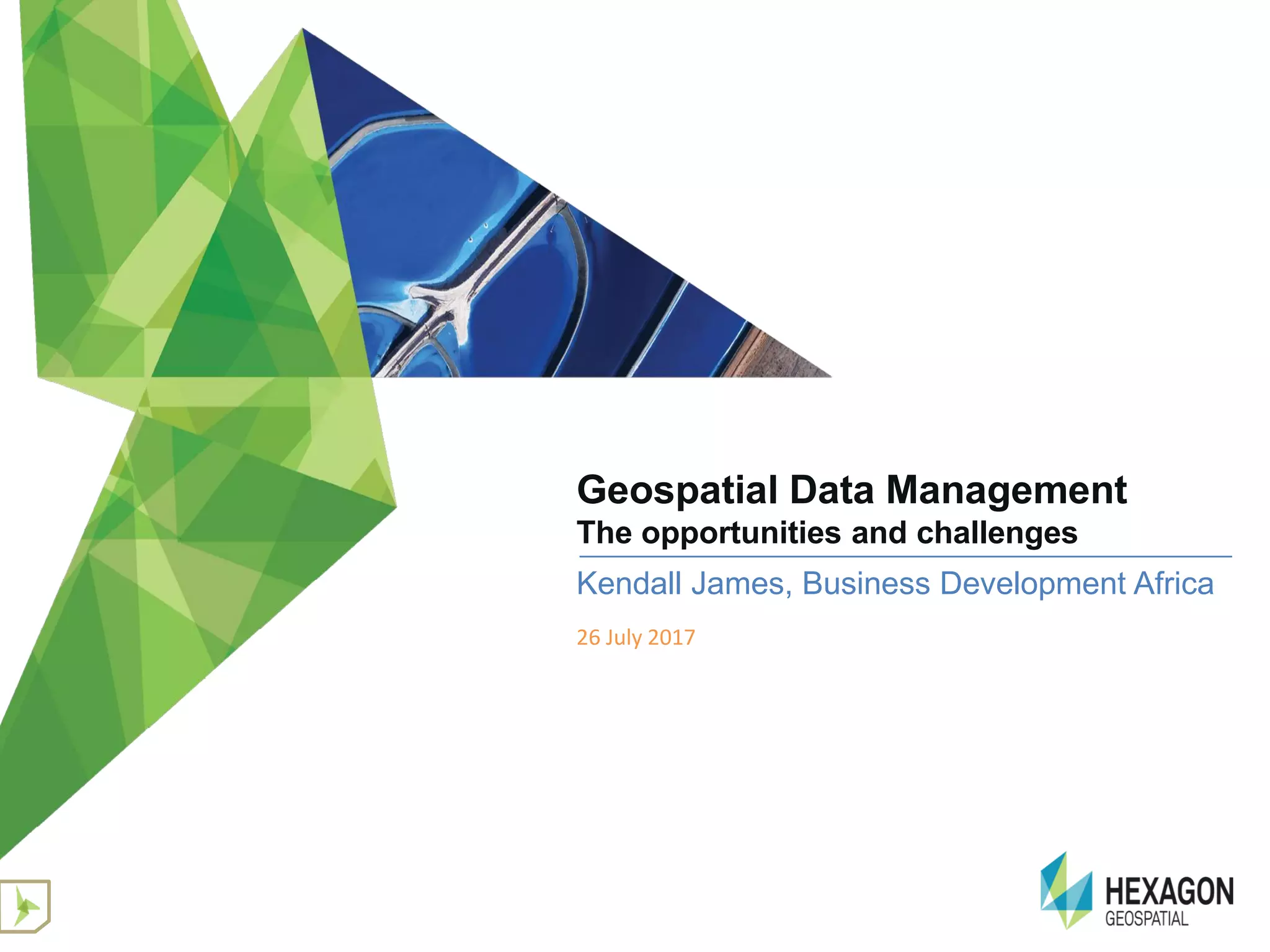 The document discusses the importance of effective geospatial data management for engineering and geospatial professionals, highlighting the need for access to accurate information efficiently and cost-effectively. It outlines the challenges posed by diverse data types, quality issues, and the integration of various systems, while also presenting opportunities in governance and innovative technologies such as IoT. The content emphasizes the role of geospatial data as a crucial component in modern urban development, especially in Africa's evolving infrastructure landscape.