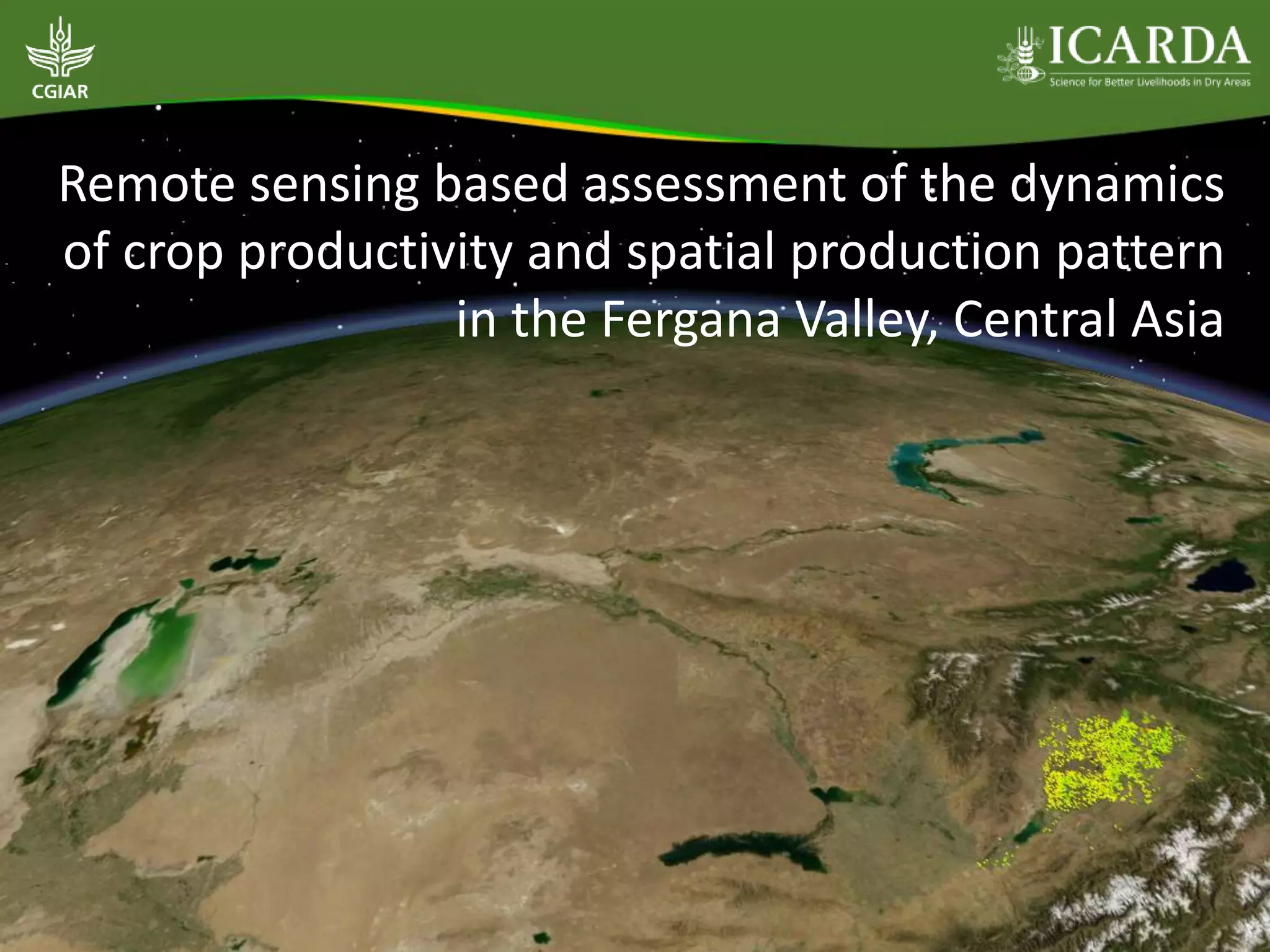 The document presents findings from a workshop on climate-smart agriculture in Central Asia, focusing on remote sensing assessments of crop productivity, particularly for cotton and wheat. It highlights challenges such as environmental degradation, climate change impacts on water resources, and the potential for improving water productivity. The use of satellite Earth observation is promoted for enhancing agricultural monitoring and decision-making, with plans for a fully automated online tool to provide timely crop condition information.