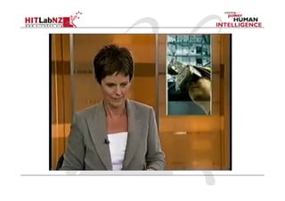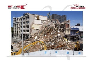 The document discusses the integration of augmented reality (AR) in geospatial visualization, highlighting its potential uses such as interactive maps and outdoor AR applications. It covers various AR technologies, their advantages, challenges like user interface complexities, and the importance of accurate tracking systems. Research directions include improving user interaction, navigation evaluation, and addressing usability issues to enhance the AR experience.