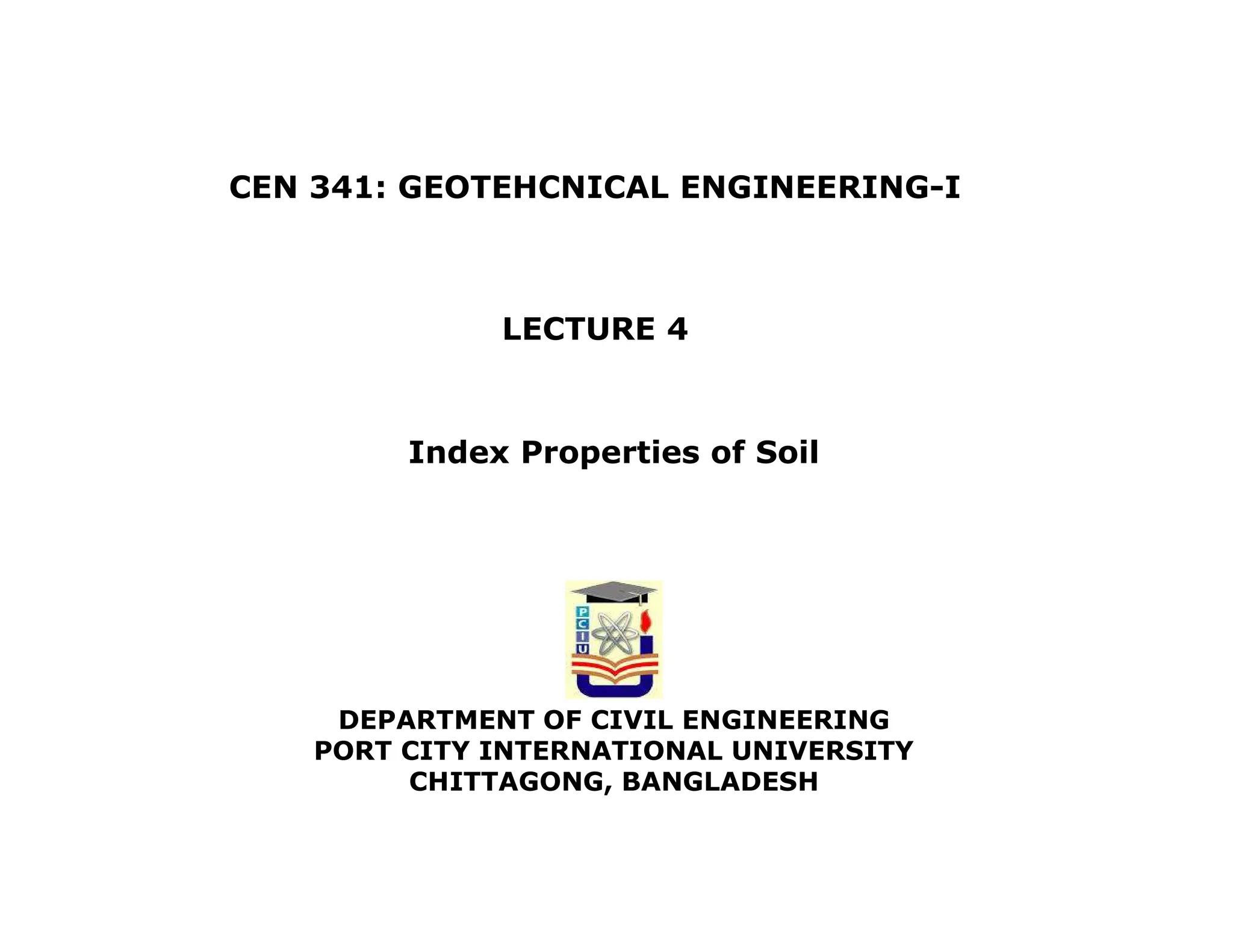 CEN 341: GEOTEHCNICALENGINEERING-I