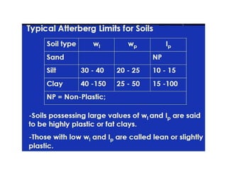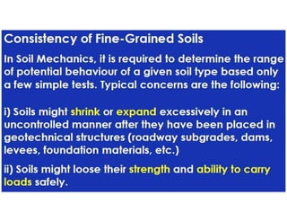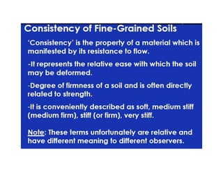 b) For fine-grained soils- Atterberg’s limit, Consistency