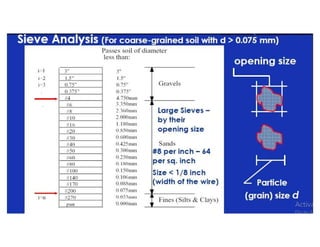 bottom. Sieve analysis includes dry sieve analysis (cohesionless