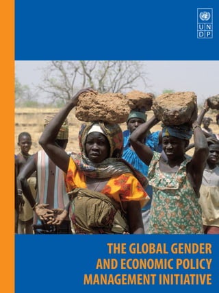 This document provides an overview of the Global Gender and Economic Policy Management Initiative (GEPMI), which aims to accelerate achievement of the Millennium Development Goals by making economic policies and poverty reduction strategies deliver results equitably to women and men. The initiative was designed by the United Nations Development Programme and includes three major components: 1) A three-week short course on gender-responsive economic policy management, 2) Country-level advisory services and capacity development workshops, and 3) A Master's of Arts in gender-aware economics. The short course consists of 12 modules addressing key gender issues in economic development and is delivered in Dakar, Senegal. Country-level services can be tailored to specific needs. The Pan-