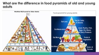 The document provides guidelines on geriatric nutrition, covering challenges in assessing body weight and nutritional status in elderly patients, and highlights specific conditions affecting appetite and hydration in this population. It discusses the importance of regular monitoring of measurements like mid upper arm circumference (MUAC) for tracking weight changes and addresses the complexities involved in diagnosing dehydration and nutritional deficiencies. A case study of an elderly female, Esther, exemplifies the critical need for nutritional support, hydration, and further assessment due to her malnutrition and dehydration signs.