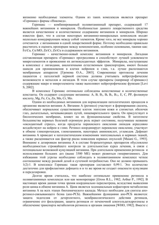 Документ обсуждает важность витаминов и микроэлементов в профилактике и коррекции патологий, связанных с дефицитом этих веществ, что особенно актуально в условиях современных условий жизни. Препарат "Геримакс" представлен как комплексный витаминно-минеральный продукт, способствующий улучшению состояния здоровья, физической и умственной работоспособности, а также профилактике и лечению различных заболеваний. Оптимальное соотношение компонентов и их усвояемость делают его эффективным средством для коррекции дефицитов и поддержания здоровья нервной системы.