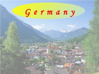 This document lists various locations in Germany including cities, rivers, and castles. It mentions cities like Berlin, Cologne, Dresden, Frankfurt, Hamburg, Heidelberg, Munich, and Nuremberg. It also lists landscapes and landmarks such as the Elbe River in Dresden, Hohenzollern Bridge and Cologne Cathedral in Cologne, Reichstag Interior in Berlin, and Brandenburg Gate in Berlin. Several castles are mentioned as well like Hohenschwangau Castle, Maus Castle, Wolfsegg Castle, and Magnificent Moritzburg Castle.