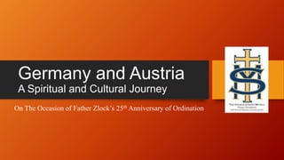 This document outlines a spiritual and cultural journey in Germany and Austria for Father Zlock’s 25th anniversary, detailing locations, trip costs, inclusions, and travel logistics. The trip is approximately $4,900 per person, covers transportation, accommodation, meals, and tours, while exclusions mainly involve lunches and souvenirs. It provides answers to frequently asked questions regarding travel insurance, hotel accommodations, and currency exchange.