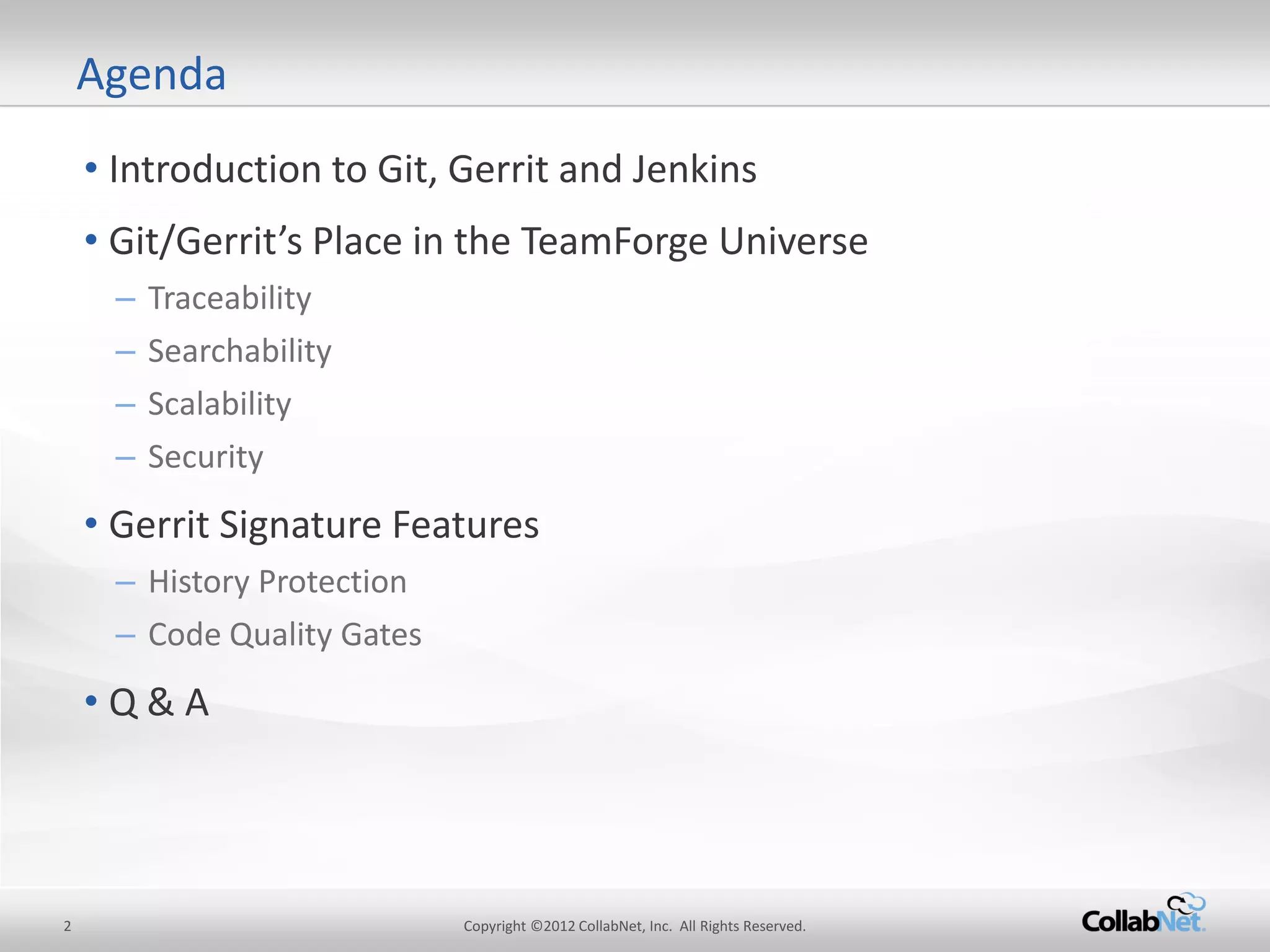 The document introduces the integration of Git, Gerrit, and Jenkins within the TeamForge environment for enterprise-level software development. It emphasizes the scalability, security, and traceability of these tools while detailing features such as code review, history protection, and role-based access control. Additionally, it discusses the potential issues related to Git history rewrites and the measures implemented for recovery and auditing.