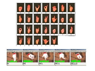The document discusses gesture recognition systems, which allow humans to interact with machines through visible bodily motions or facial expressions. It describes how such systems work by capturing images of gestures via cameras, preprocessing the images, and identifying the gestures. Examples of applications mentioned include sign language recognition, game control through gestures, and using facial expressions for affective computing. Challenges with gesture recognition systems include the cost and difficulty of developing them, as each gesture must be assigned a specific command.