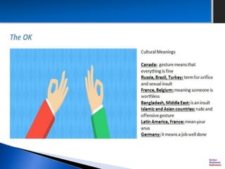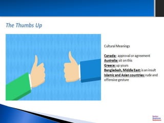 Gestures, which include movements of fingers, arms, or hands, serve as powerful nonverbal aids that can be either deliberate or subconscious. Their meanings can vary significantly across different cultures, making caution necessary to avoid misinterpretation. The content is part of an online course on body language and non-verbal communication, with registration details provided.