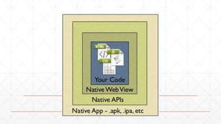 Документ представляет собой глубокое погружение в технологии PhoneGap и Apache Cordova для мобильной разработки. В нем рассматривается история создания, изменения и версии этих платформ, а также основные этапы их использования и разработки приложений. Также упоминаются проблемы производительности, ограничения и некоторые команды для работы с Cordova.