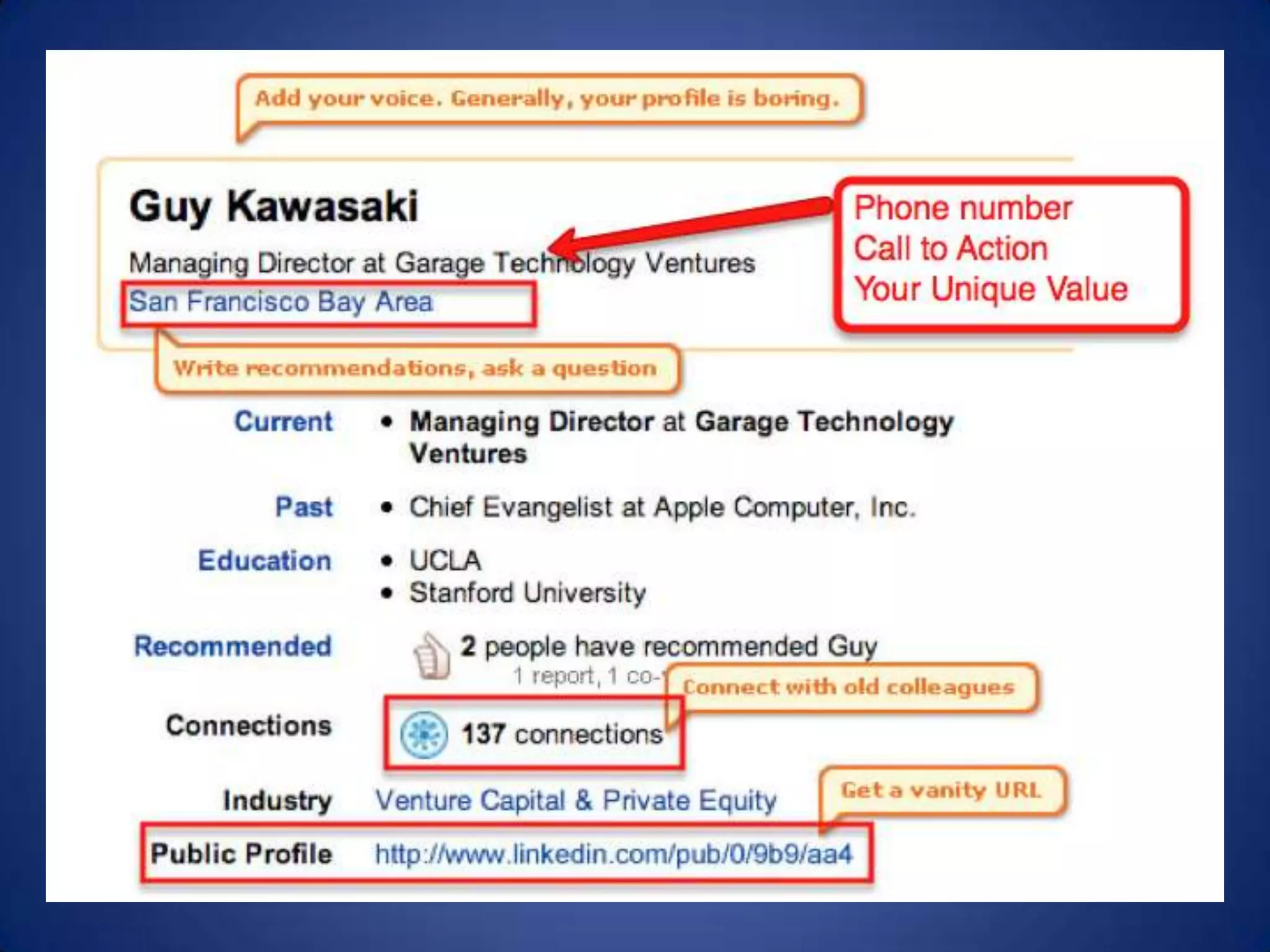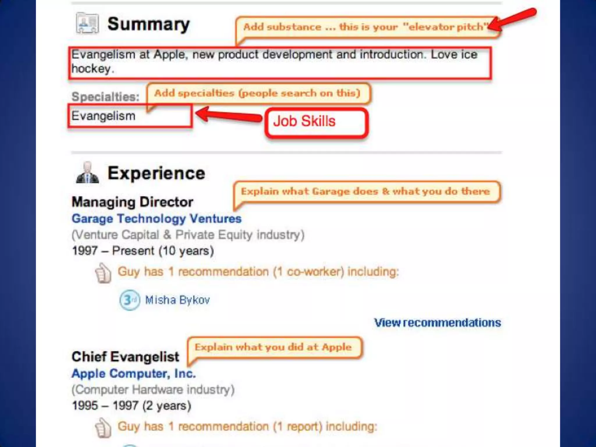 The document summarizes a presentation about using LinkedIn effectively for business and job searching. It provides background on LinkedIn as a professional networking site with over 120 million users. It outlines strategies for creating an optimal profile, engaging with groups and contacts, and using LinkedIn tools and apps to maximize exposure and connections. The presentation reveals ways to showcase skills, find jobs through the site, and get introductions to expand one's professional network.