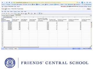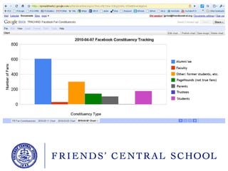 The document discusses strategies for using social media effectively in educational settings, emphasizing the importance of understanding constituents and being adaptable with new tools. It suggests using Google Alerts, creating social media experiments, and tracking their effectiveness through analytics. Additionally, it highlights the significance of setting clear goals and being open to change in communication methods.