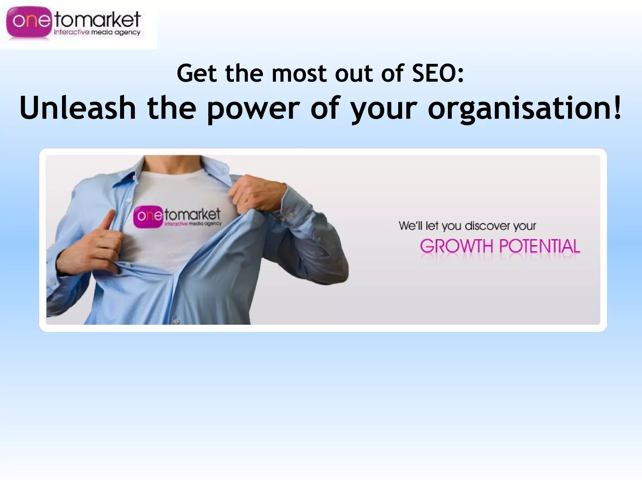 This document discusses strategies for maximizing SEO effectiveness. It recommends focusing on content, technology, and links while being aware of Google algorithm updates. Key aspects include creating helpful, on-topic content for target audiences; sharing success stories to build authority; and continuously learning about customer needs and market trends. The overall message is that SEO requires a strategic, collaborative approach across an organization.