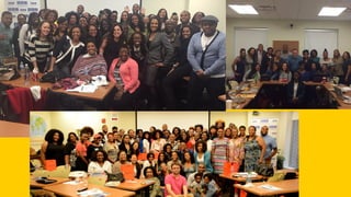 The document discusses the essentials of blogging, including content creation, marketing strategies, and the importance of sharing. Presenter Ella Rucker emphasizes that anyone can blog, even if they don't consider themselves a writer. The content includes tips on guest posting, using social media, and repurposing existing material.
