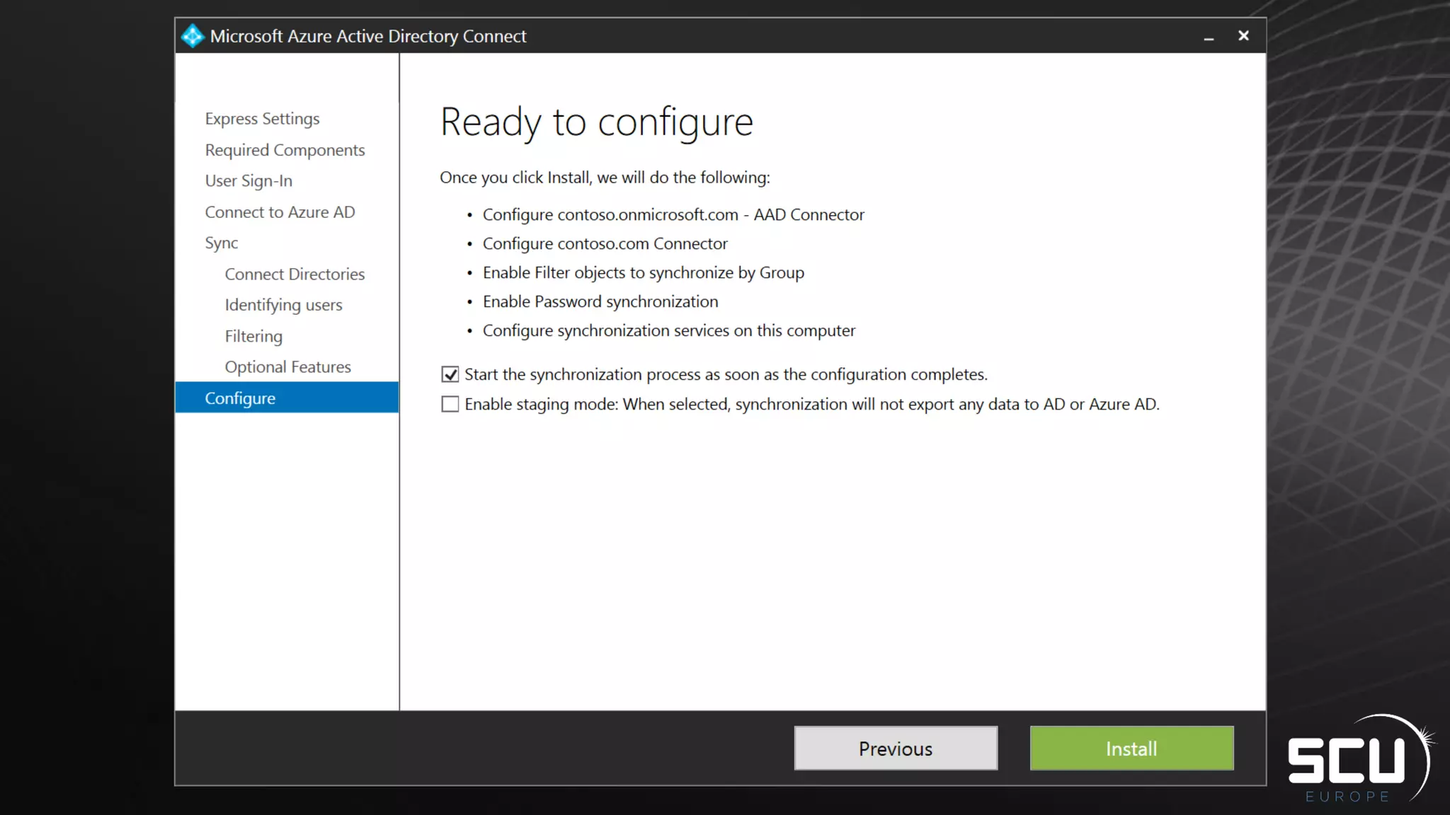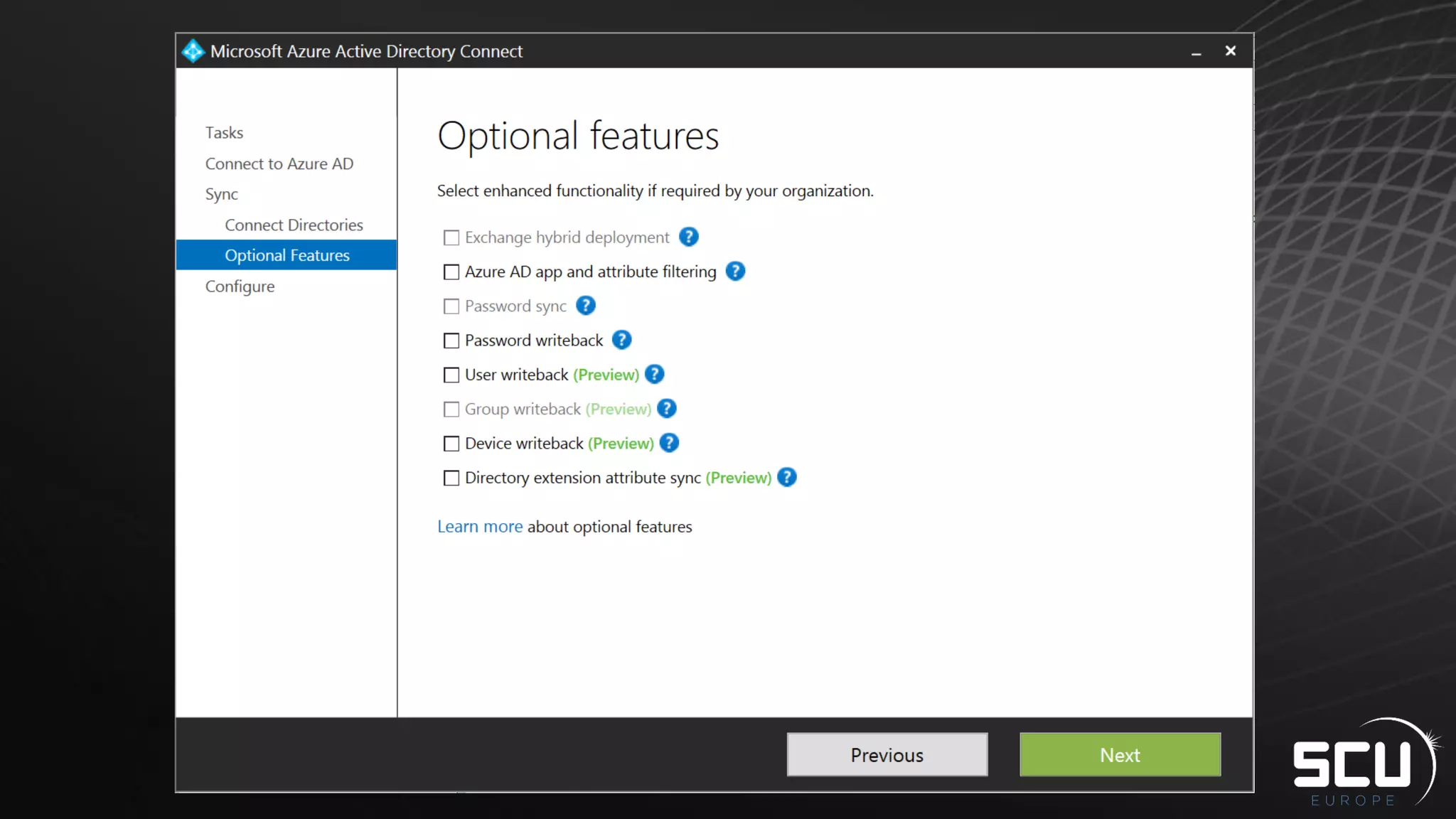 Azure AD Connect provides a simplified way to set up hybrid identity between on-premises Active Directory and Azure Active Directory. It can be configured using Express settings for a quick setup in four steps, or using Custom settings to address more complex scenarios. The tool consolidates previous identity bridge components like DirSync and Azure AD Sync. It also allows enabling additional features like password synchronization, device writeback, and extending directories with custom attributes. Admins can monitor their hybrid identity configuration using Azure AD Connect Health.