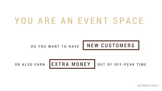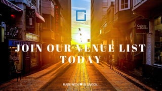 GetSpaces is a platform connecting event organizers with venue spaces in Saigon, allowing venues to be booked online with ease. The service offers free digital marketing, tailored venue pages, and charges only for successful bookings. Partnering with GetSpaces provides additional benefits, such as expert venue pricing reviews and no upfront costs.