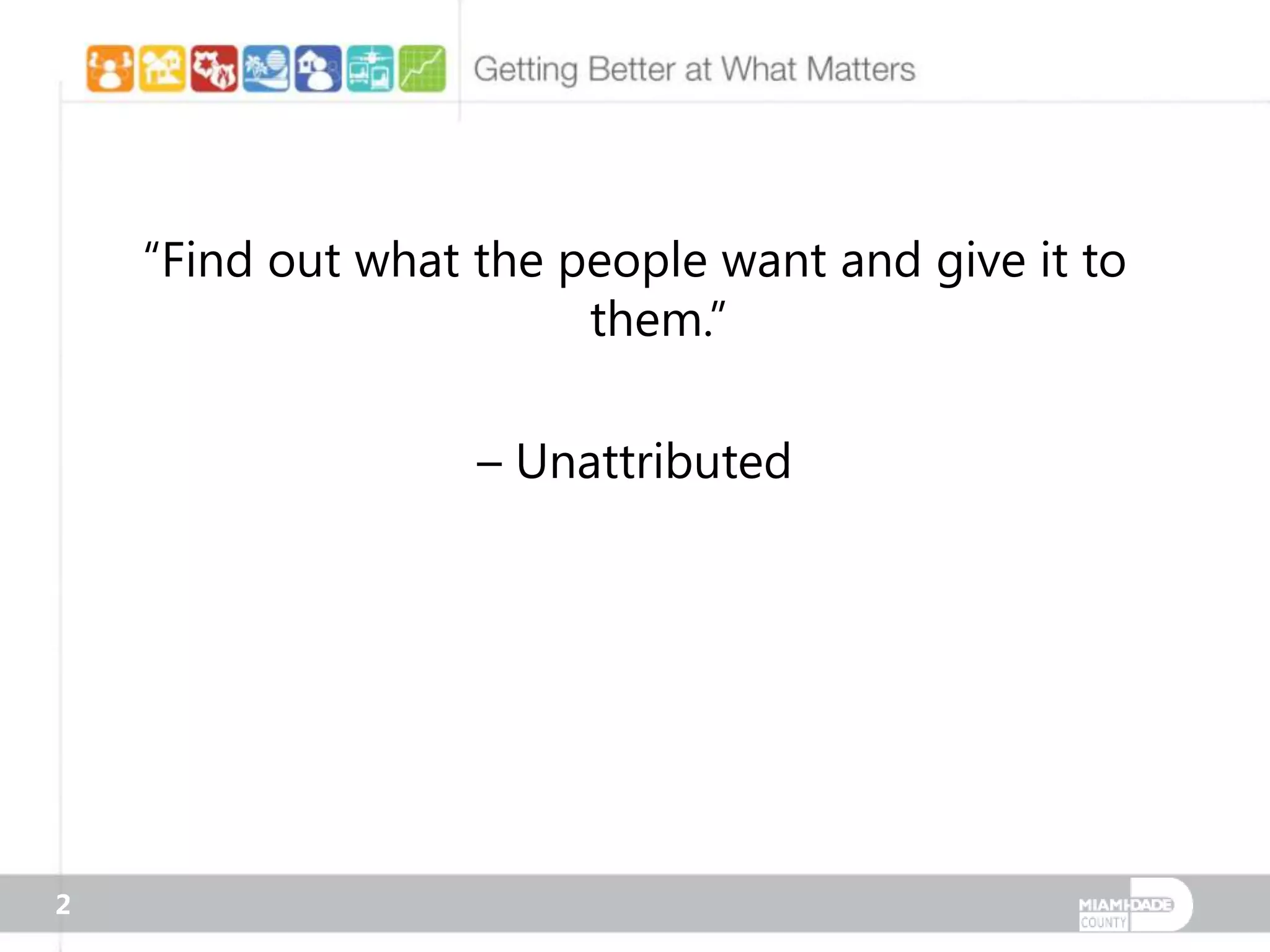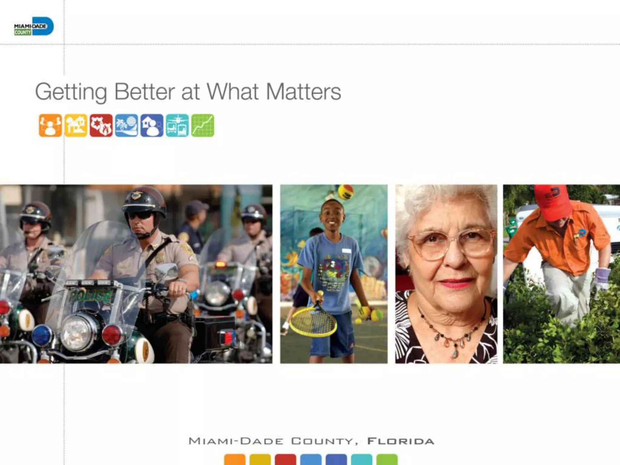 A resident satisfaction survey conducted in October 2008 across multiple service areas reveals improvements in public safety, neighborhood services, transportation, recreation, health, and economic development in Miami-Dade County. Key findings include increased satisfaction ratings in emergency services, waste management, and affordable housing initiatives, while crime rates, specifically juvenile arrests, have significantly decreased. The survey indicates that overall, 93 out of 102 measures have shown improvement compared to previous years, reflecting progress in local government services.